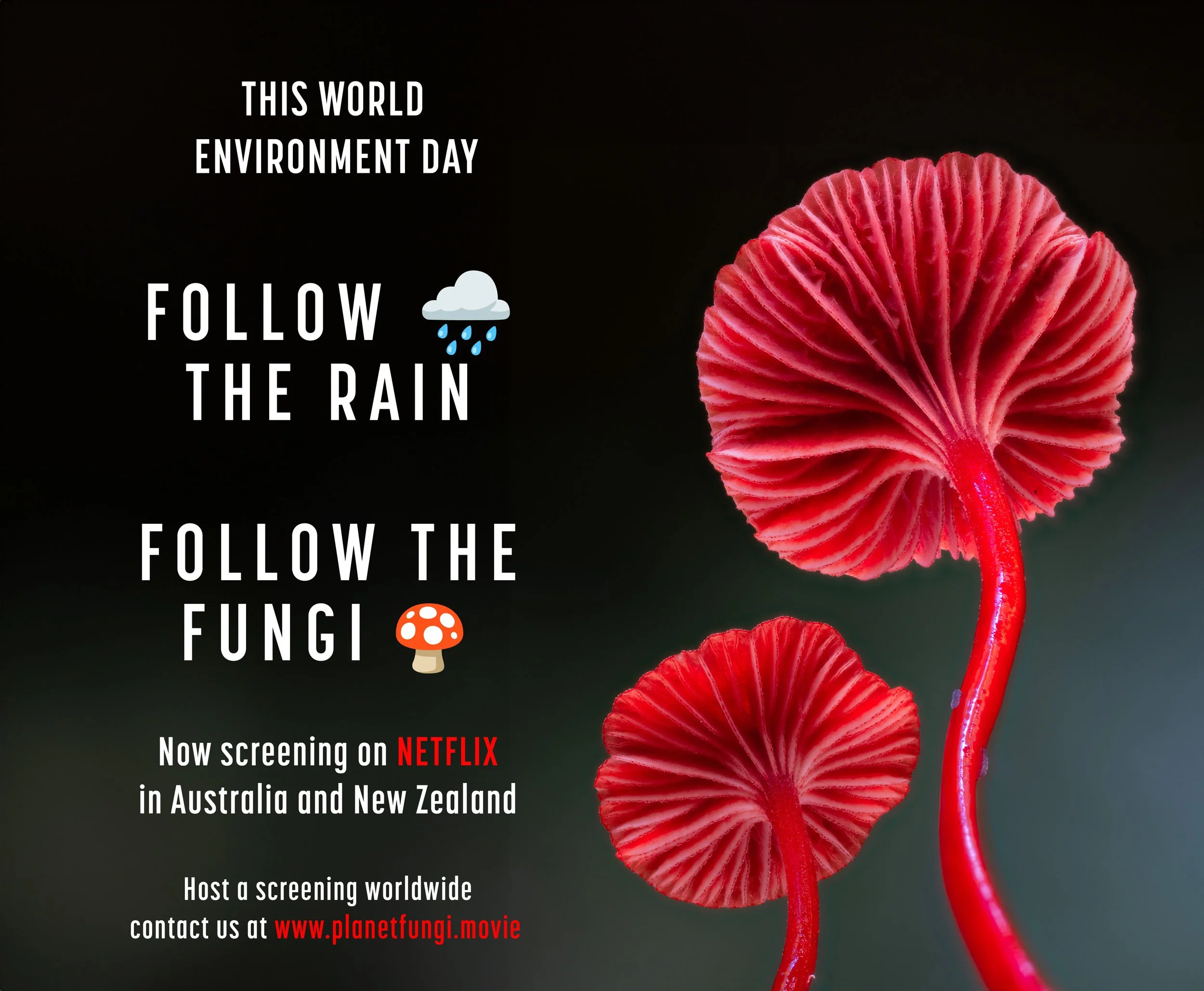 This World Environment Day, we invite you to (re)discover the extraordinary story of fungi in our feature documentary Follow the Rain — now streaming on Netflix across Australia and New Zealand.